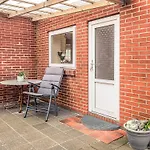 8 Person Holiday Home In Ulfborg ligt op slechts 250 meter ver van Thorsminde Strand en nodigt gasten uit om te ontspannen op een terras.